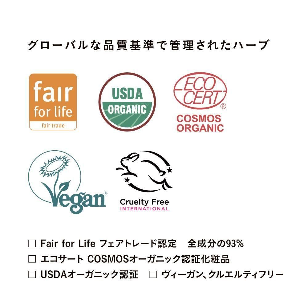 □ USDAオーガニック認証 □ ヴィーガン、クルエルティフリー